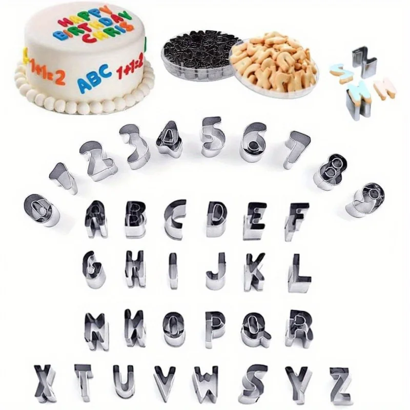 Set of 37 Alphanumeric Cookie Cutters - Metal Letter And Number Pastry Cutters Made of Stainless Steel for Personalized Baking