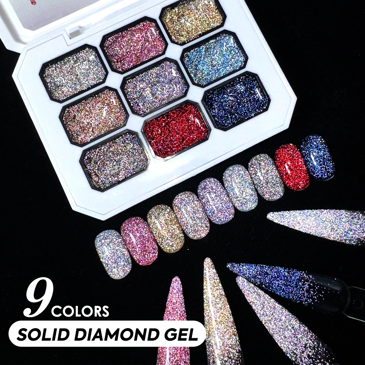 1pc 9-color broken diamond solid nail glue, burst flash shiny broken diamond glue, luster long-lasting, nail DIY home salon