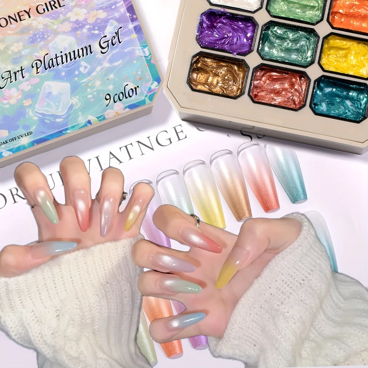 1pc Nine grid fluorescent pat gel transfer glue rainbow bright colors high saturation UV&LED nail polish adhesive salon DIY Y2K