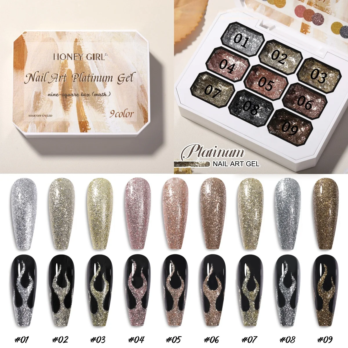 9 Color Metallic High Density Platinum soild Nail polish- Sparkling Gel for Nail Outlines, French Tips, Floral Designs , DIY Man