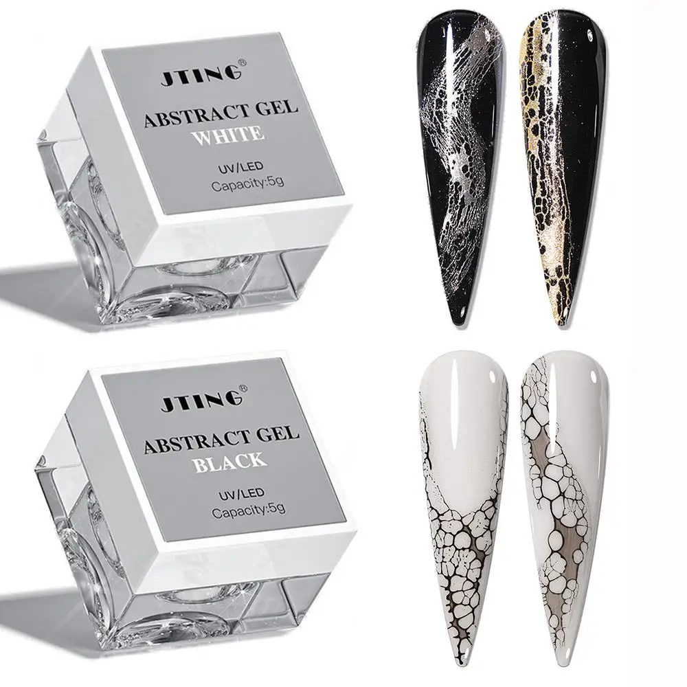 5g White Black Lace Gel Nail Polish Hole Bubble Wave Texture Abstract Nail Gel UV/LED Semi-Permanent Nail Art Painting Varnish 2