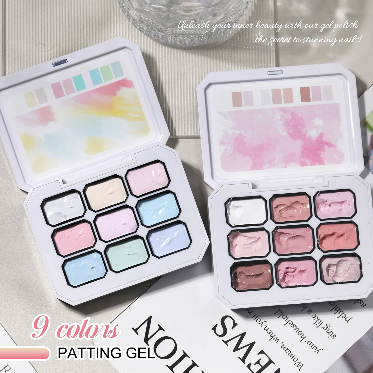 1pc Candy glass 9-grid solid nail polish gel patting glue new transparent silky thick nail art creation decoration DIY summer