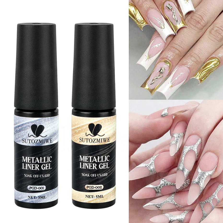 5ml Gold Silver Metallic Liner Gel Nail Polish Mirror Chrome Effect Nail Art Painting Gel Soak Off UV/LED French Line Varnish 2