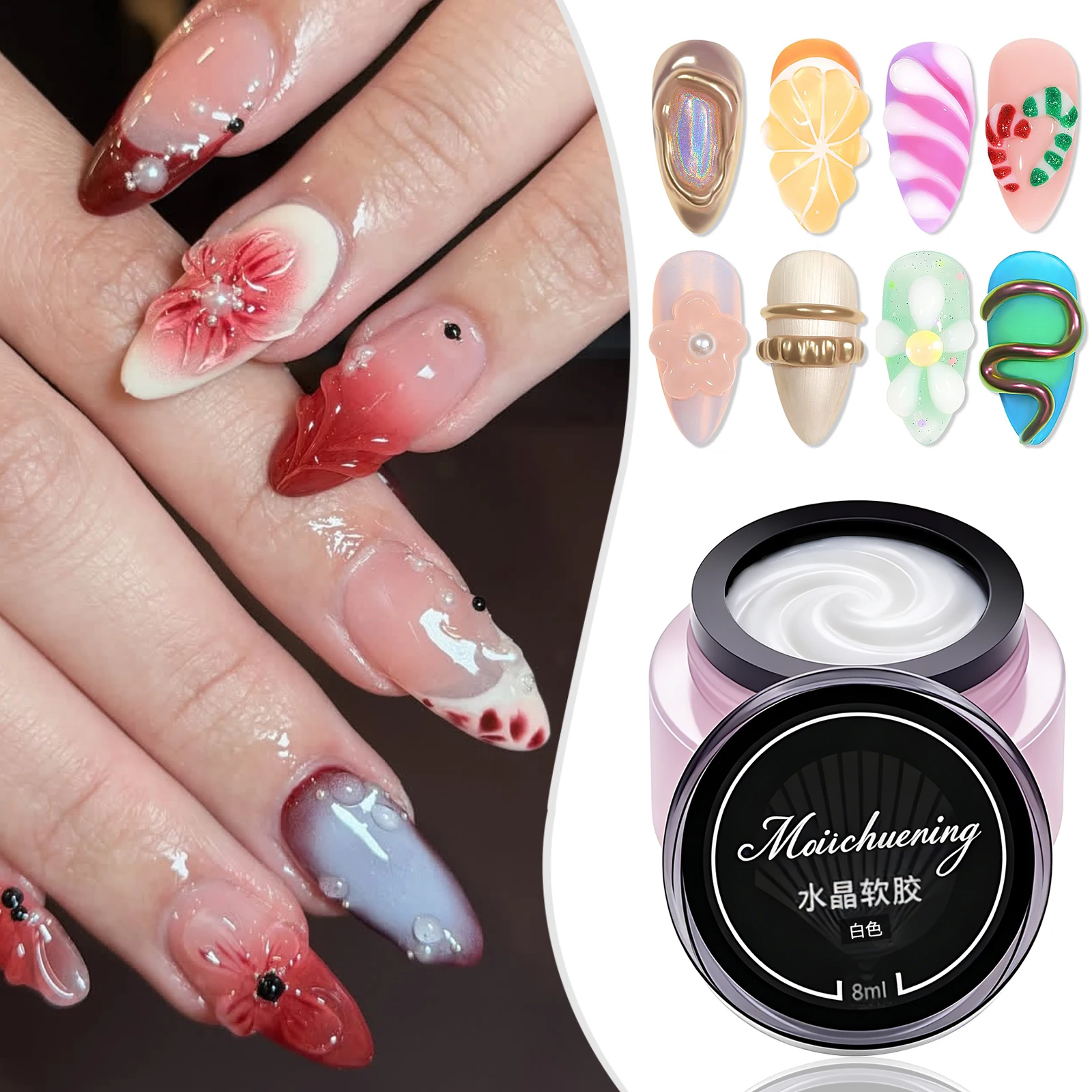8ml Clear Non Stick Hand Extension Gel 3D Shaping Sculpting Carving Nail Art Solid Hard Gel for DIY Nail Art Decoration
