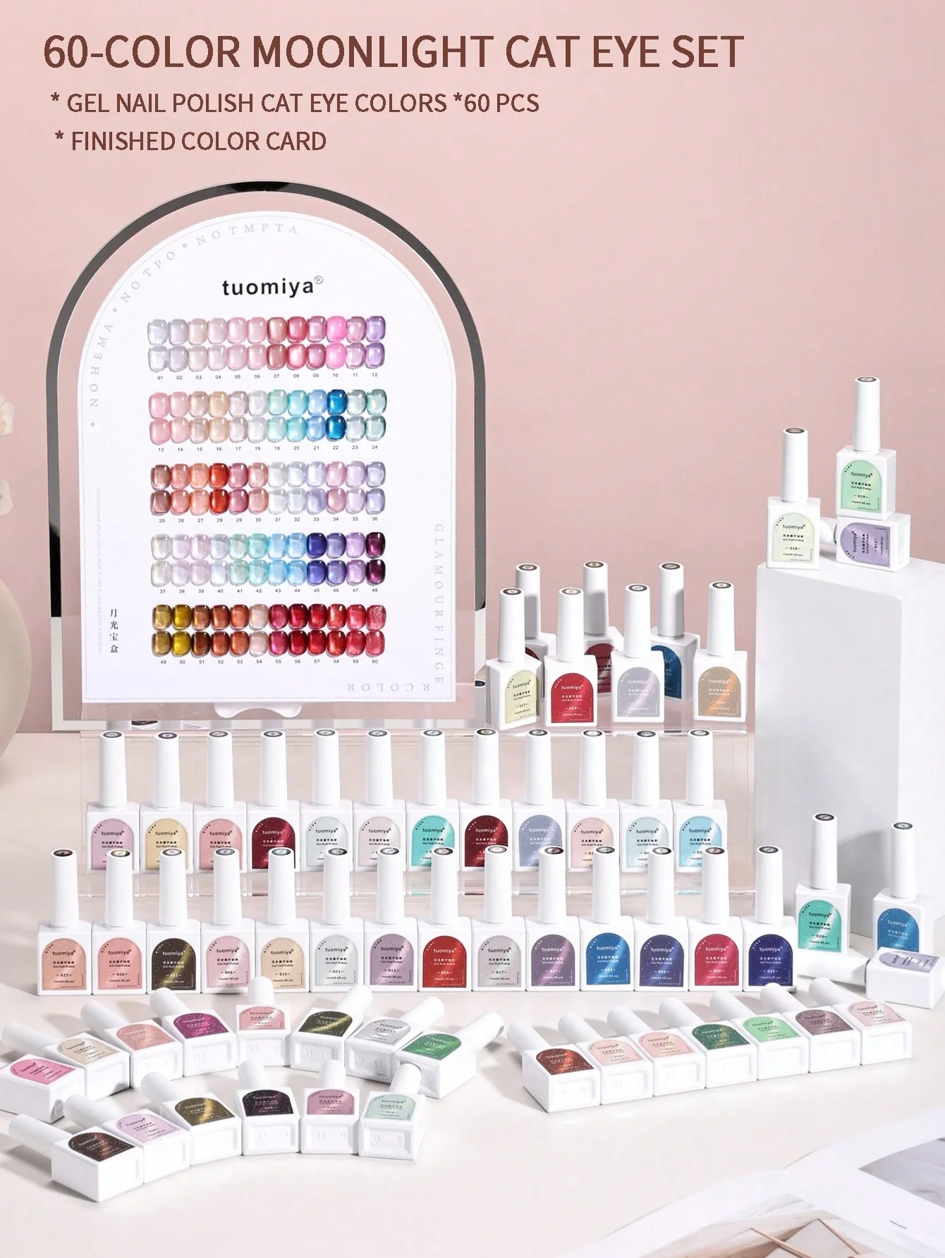 60-color Moonlight Cat Eye nail polish gel set with color chart, UV nail gel, DIY nail art charm, suitable for nail salons.