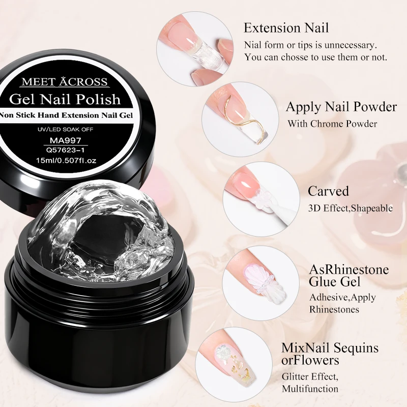 15ml Non Stick Hand Extension Hard Gel Nail Polish for 3D Carving Flower Modeling Nail Art Shaping UV LED Long-Lasting Nails