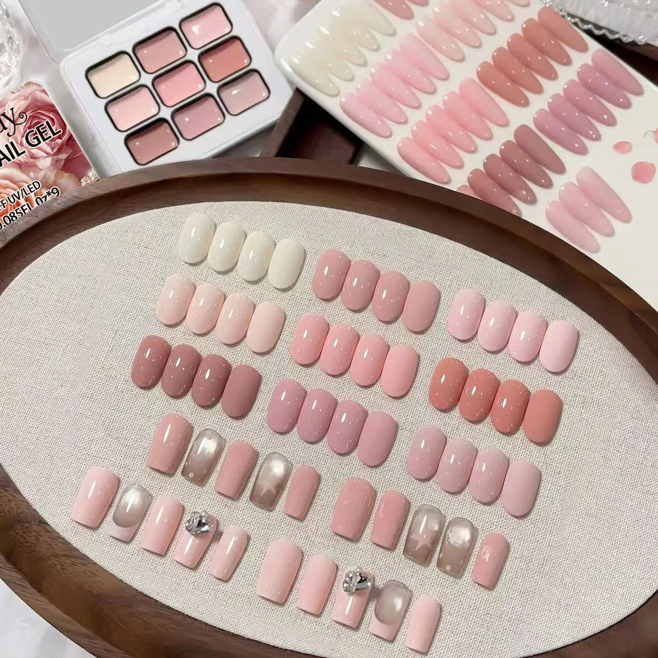 This 9-color cute low-saturation pink solid gel nail polish set is suitable for nail art beginners and nail technicians alike, o