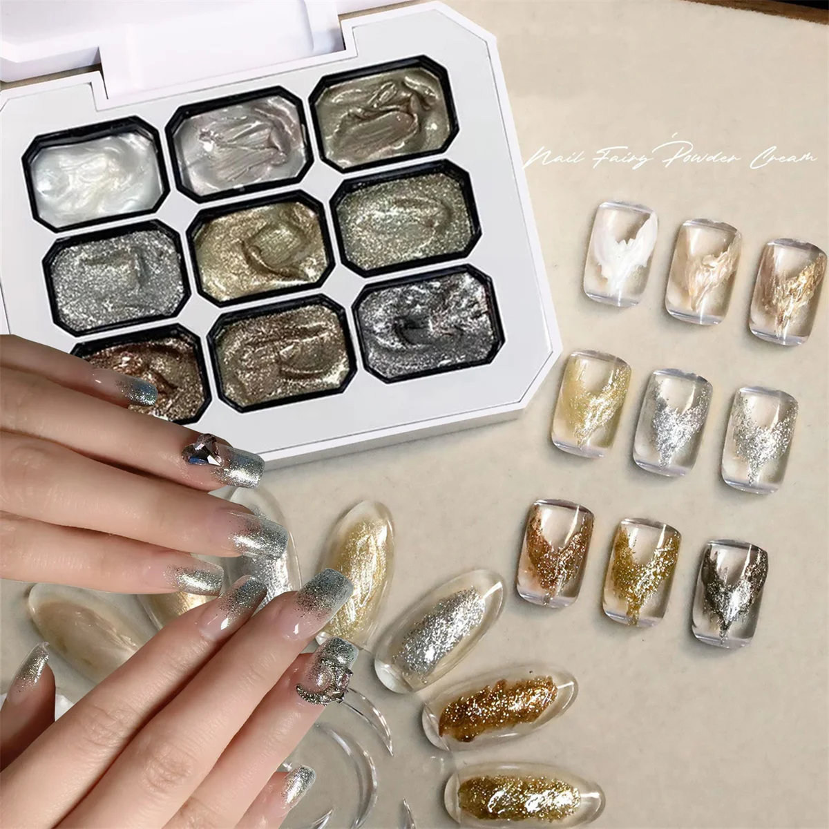 9-grid color reflective diamond solid glue UV gel nail art nail charm DIY nail salon