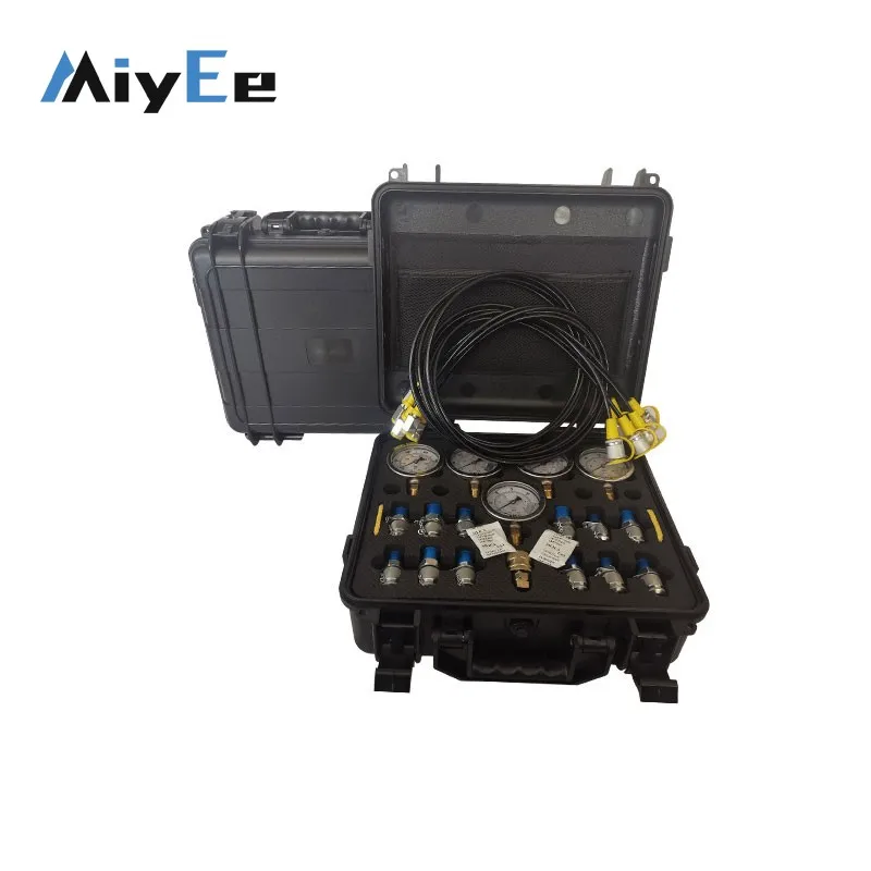 1-60MPA Hydraulic Pressure Tester Kit w/ 5 Gauges 5 Hoses 13 Connectors 14 Tees for Excavators