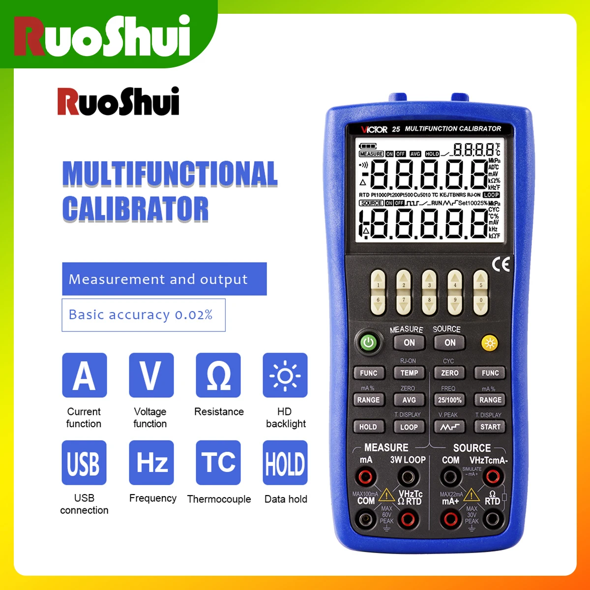 VICTOR 01+ Temperature Source Multifunction Process Calibrator 0.05%. 5 Digits Display 8 Types Thermocouple