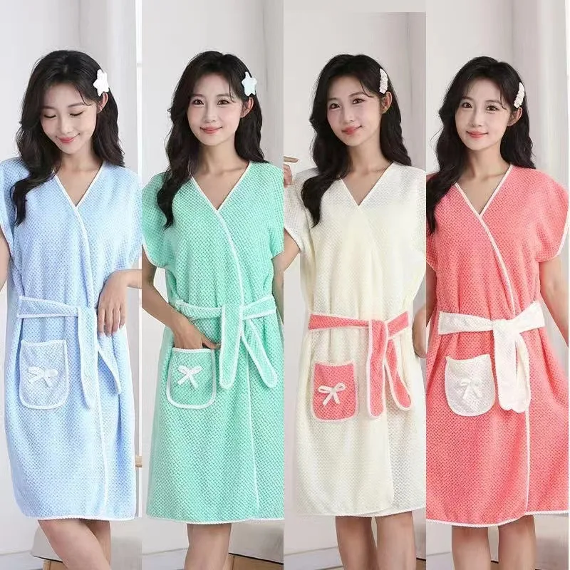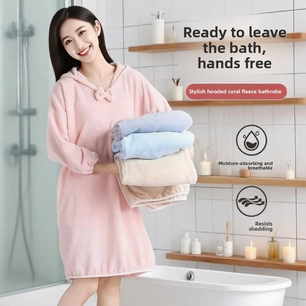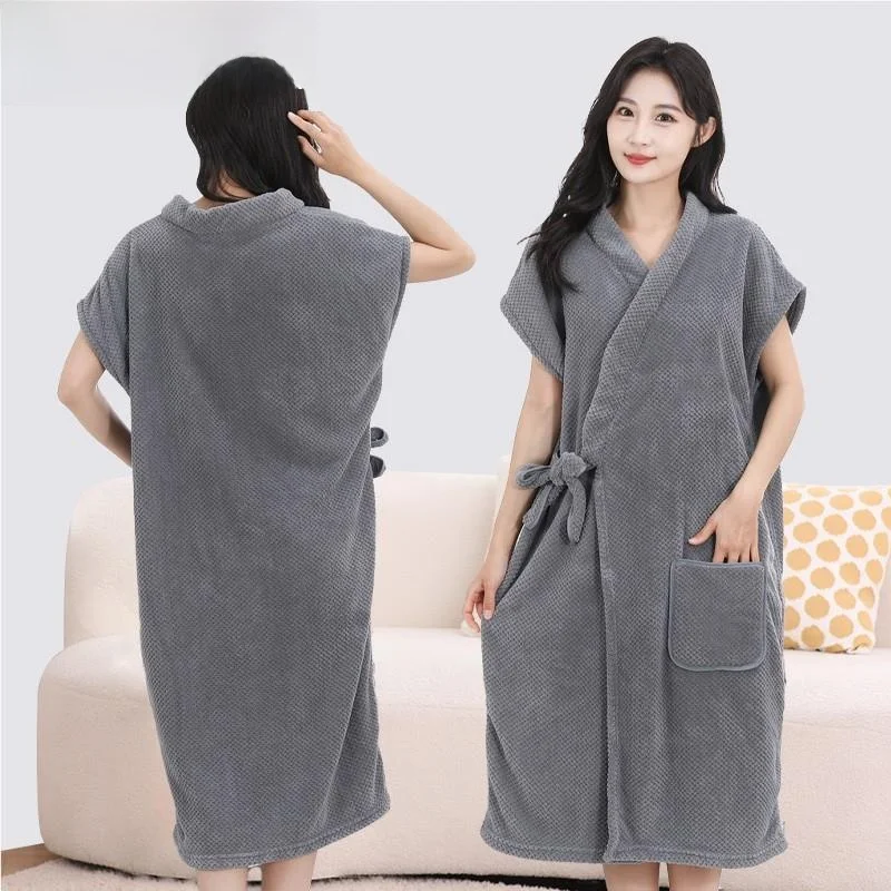 Bathrobes Coral Fleece Women's Fashion Water Absorption Without Hair Loss Wearable Bathrobes Comfortable Household Bath Towels