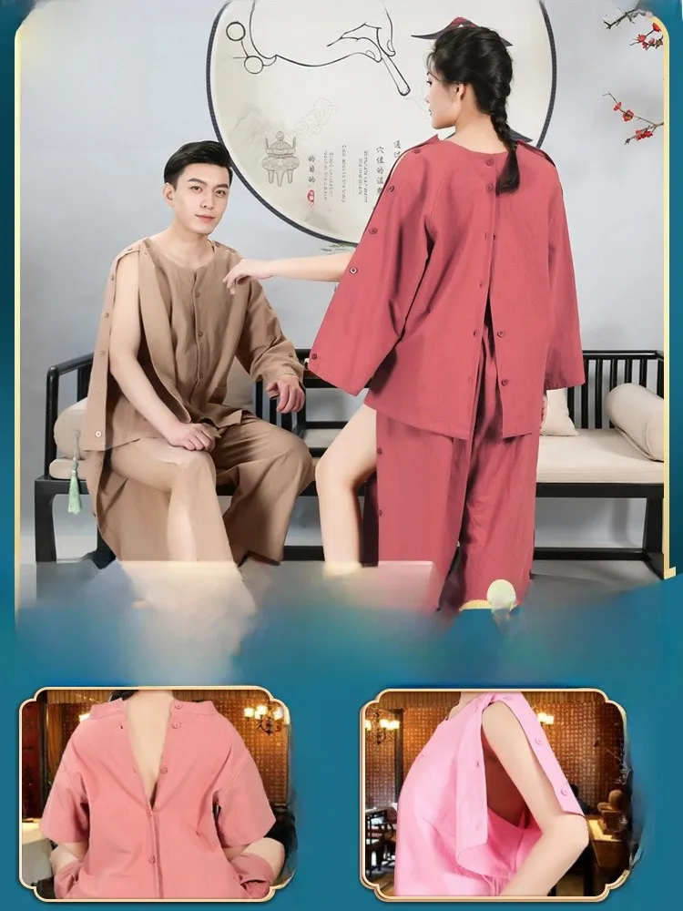 Pure Cotton Ba Open Massage Clothes Women's Sle Front And Ba Button Beau Therapy Servings Ear Piing Clothes