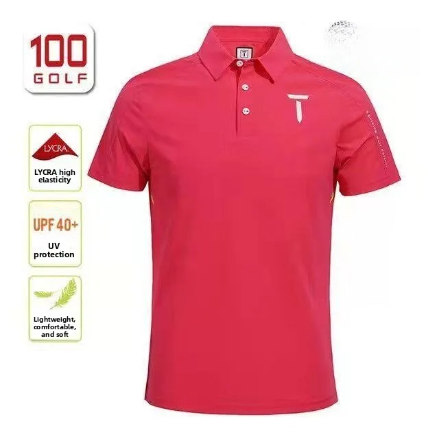 European Tour Golf Summer Short Sleeve Shirt High Elastic Outdoor Sports Collared T-Shirt for Men Authentic Sportswear