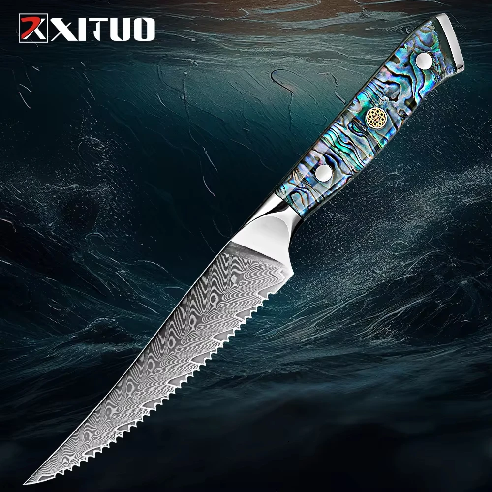 Kitchen Steak Knife 5 Inch Damascus Steak Knife VG10 Japanese Steel Steak Knife Full Tang,Serrated Steak Knives Ergonomic handle