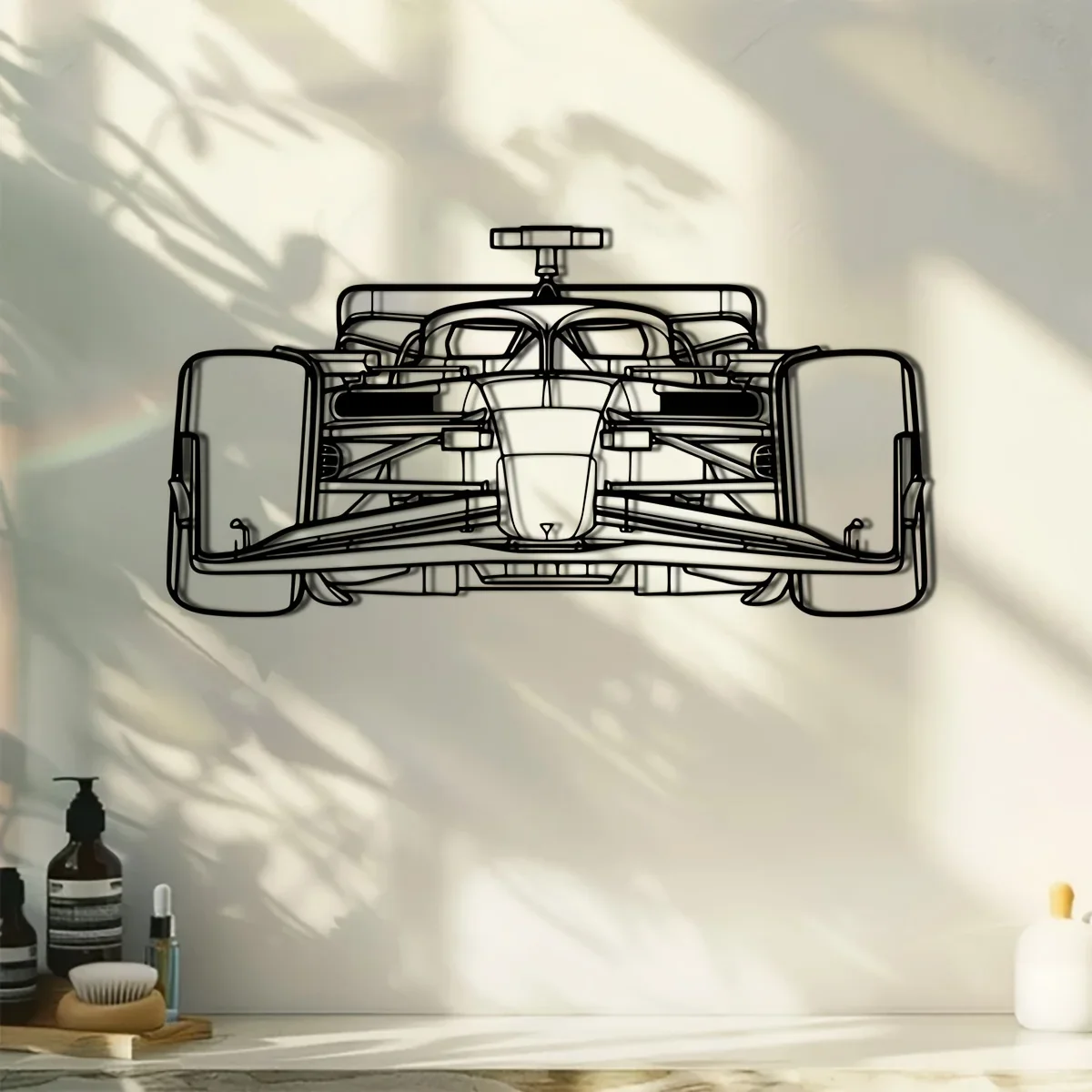 Racing Car Silhouette Metal Wall Art, 1pc Metal 15.74*8.11 inches - Elegant Black Iron Decor Ideal for Home Patio Balcony