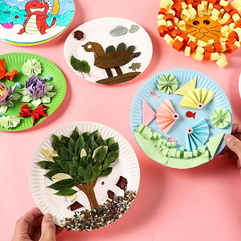 DIY Paper Plate 5/6/7/8/9/10 Inch White Colorful Circular Paper Plate Students Handmade DIY Papers Plate Decoration Supplies