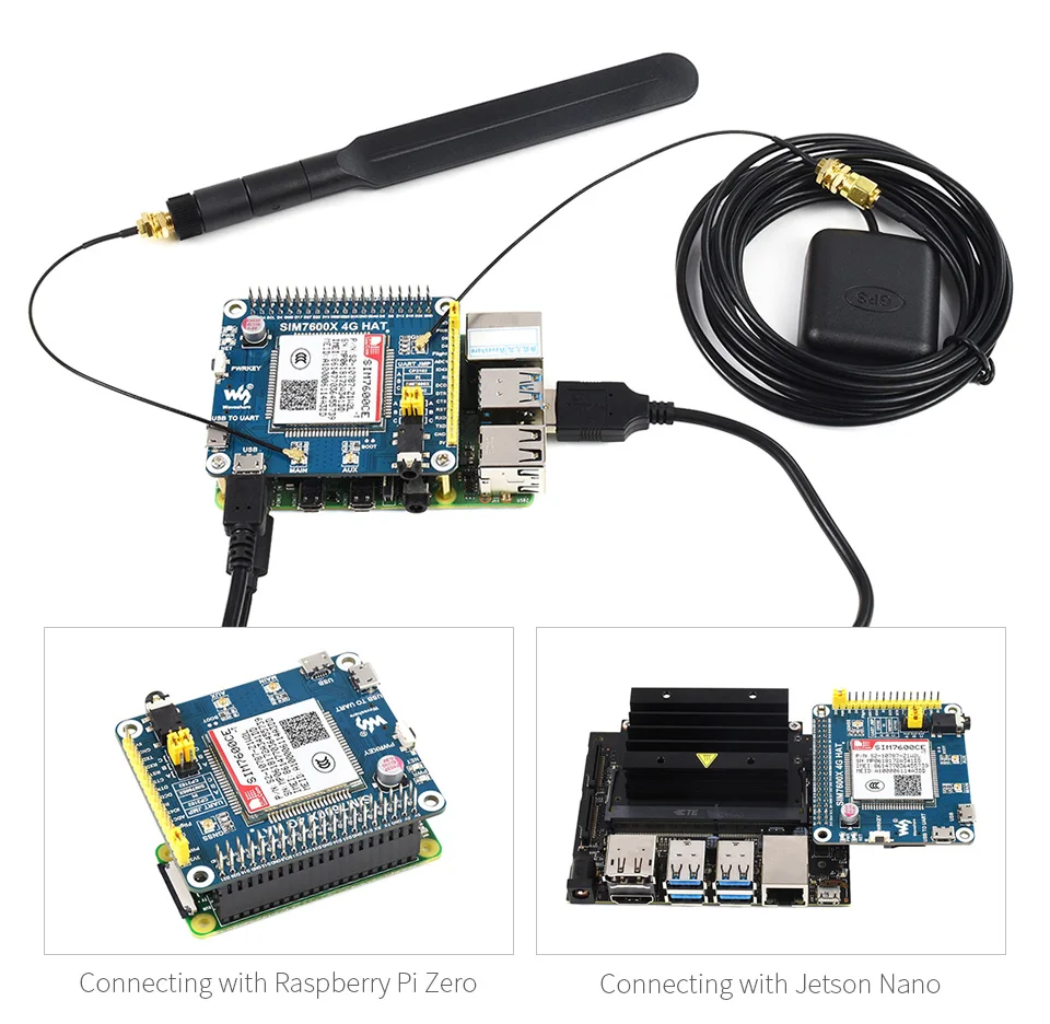 SIM7600G-H M.2 4G HAT for Raspberry Pi, LTE CAT4 High Speed, 4G/3G/2G, GNSS, Global Band