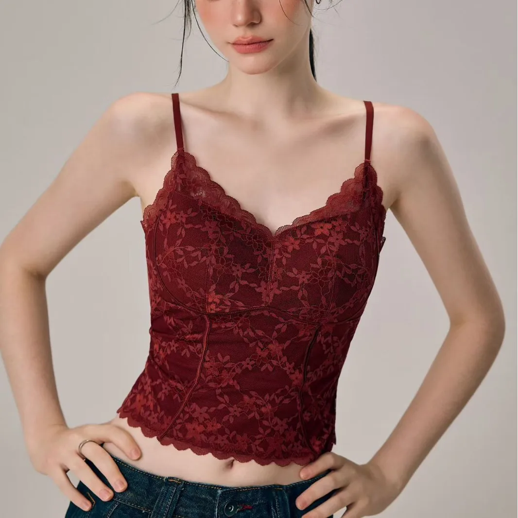 Thiened cm Strap Vest Sle Women's Underwear Lace Inteated Fixed Cup Auxiliary Breast Reduction Bra Cotton V-ne