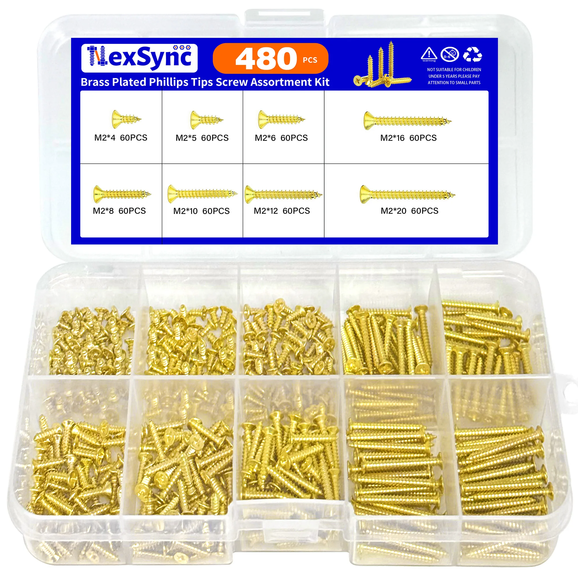 NexSync 480Pcs M2 Brass Cross Head Screws 8 Sizes Rust-Resistant Easy Install for Hanging Woodworking Furniture DIY Repairs Kit