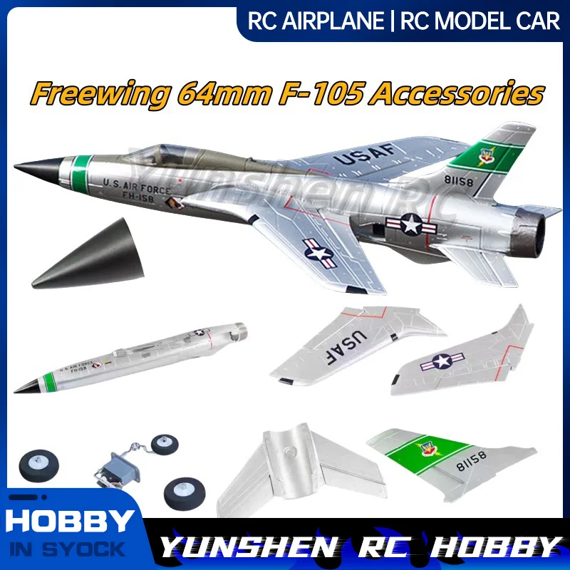 Freewing 64mm F-105 "Thunder God" Aircraft Accessories, Fuselage, Main Wings, Flat Tail, Vertical Tail, Nose Cover, Cockpit