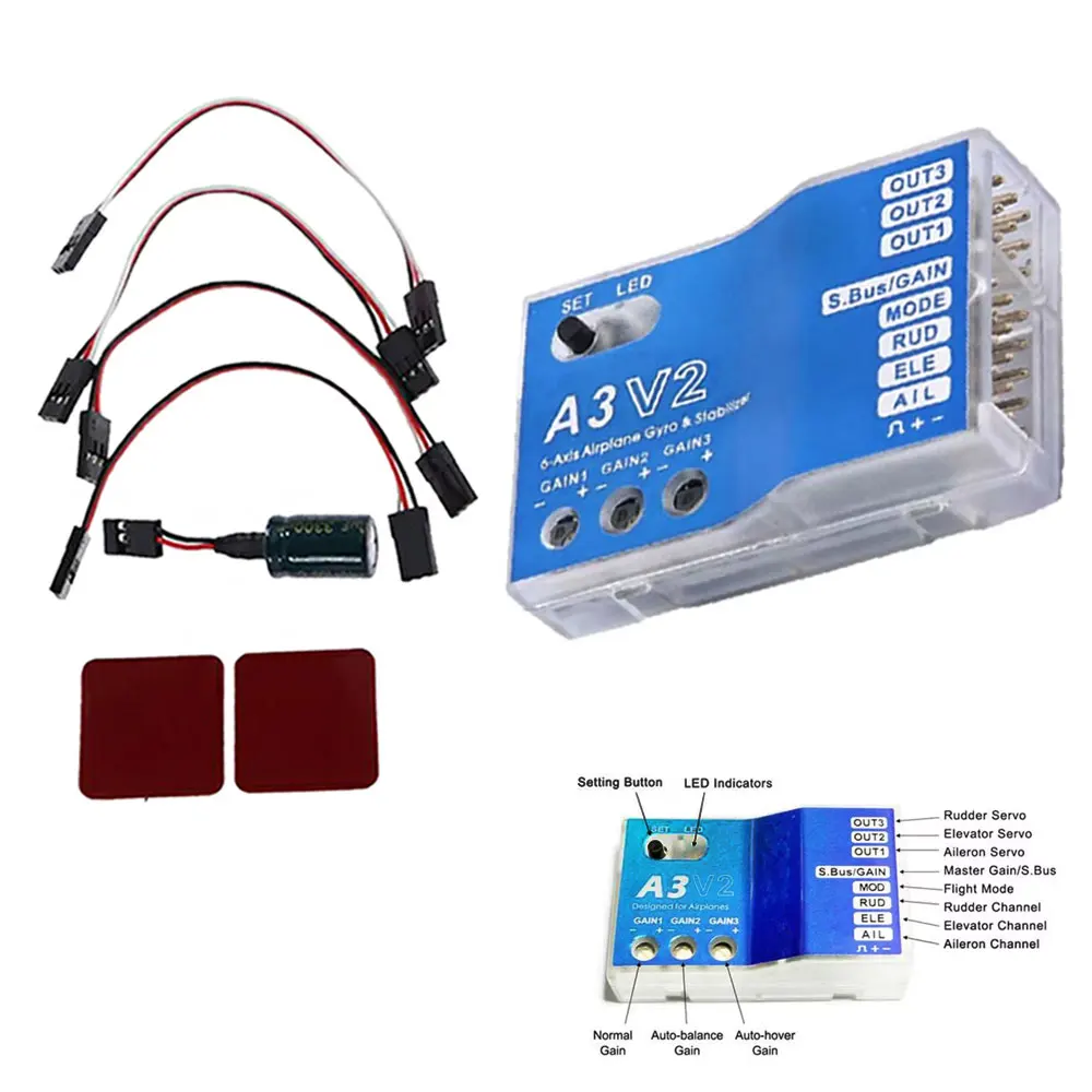 A3 V2 3-Axis Gyro Flight Controller - Precision Stabilizer for RC Airplane Fixed-wing Helicopter Models