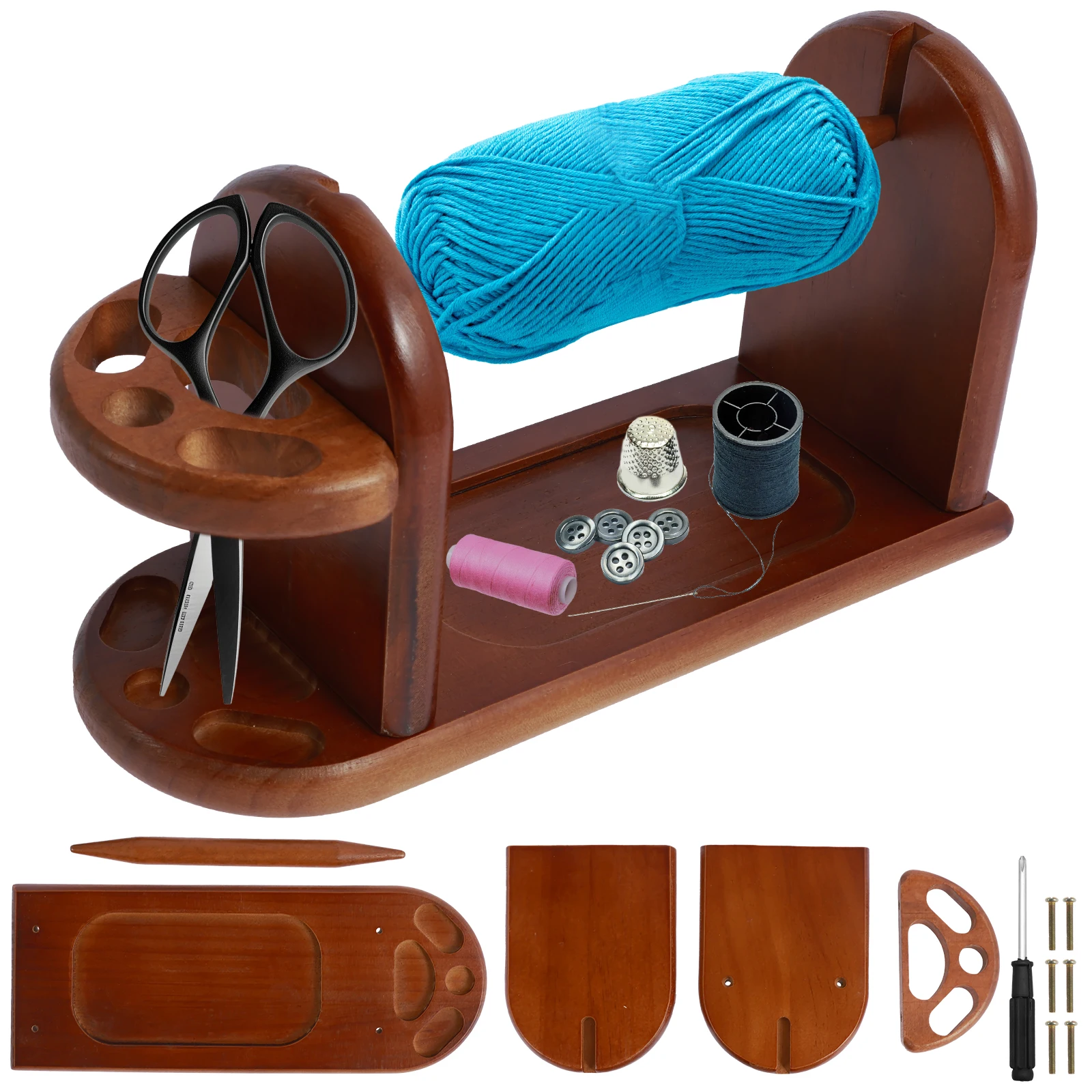 Single/double-axis Winding Machine, DIY Bamboo/wood Circular Base, Detachable Rotating Base, Wool Ball Holder