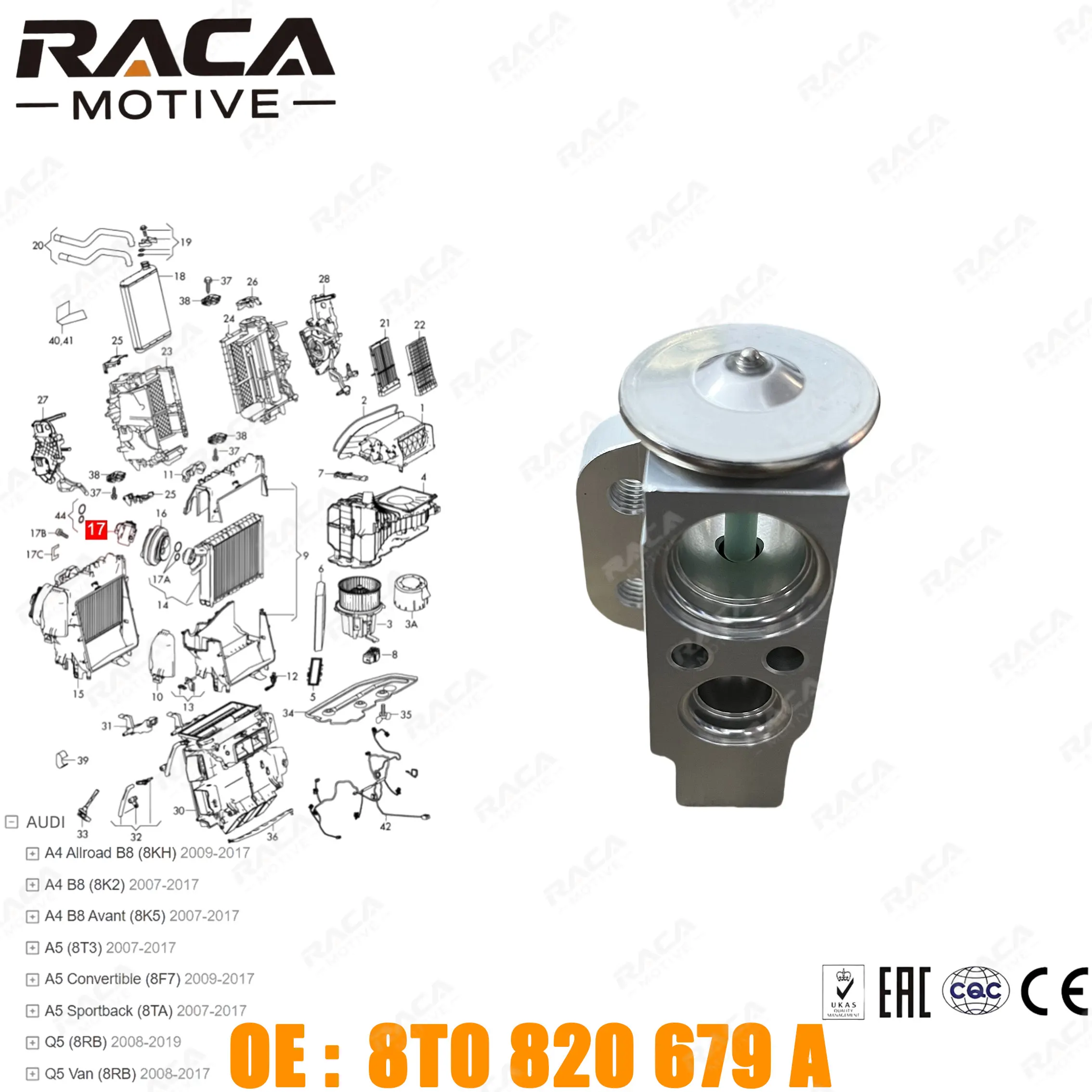 Car Air Conditioning Air Expansion Valve for Audi A4 B8 (8Kh/8K2/8K5) A5 (8T3/8F7/8Ta) Q5/Q5 Van (8Rb) 8t0820679 8T0820679A
