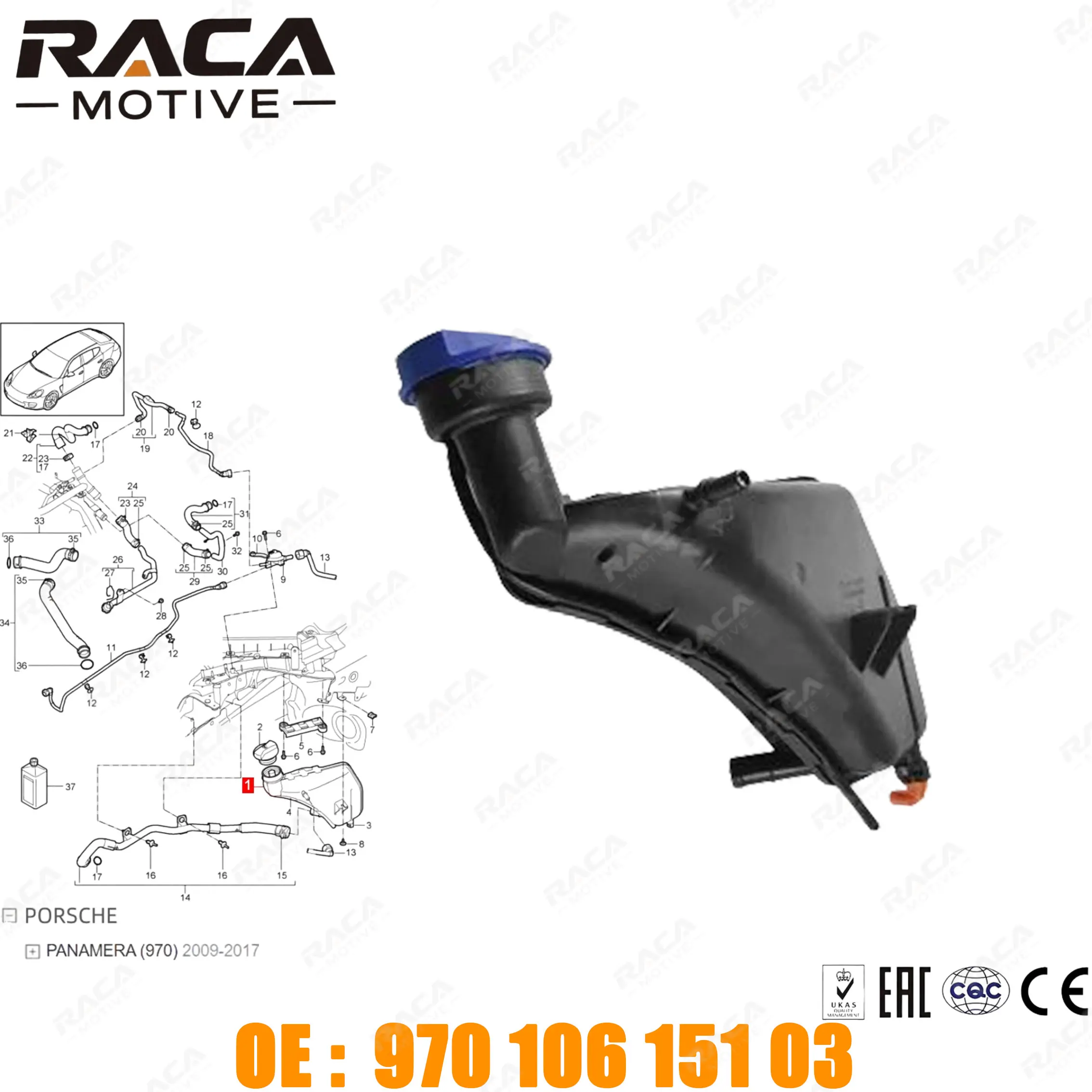 Car Engine Coolant Compensation Tank Expansion Tank for Porsche Panamera (970) 2009-2017 97010615103