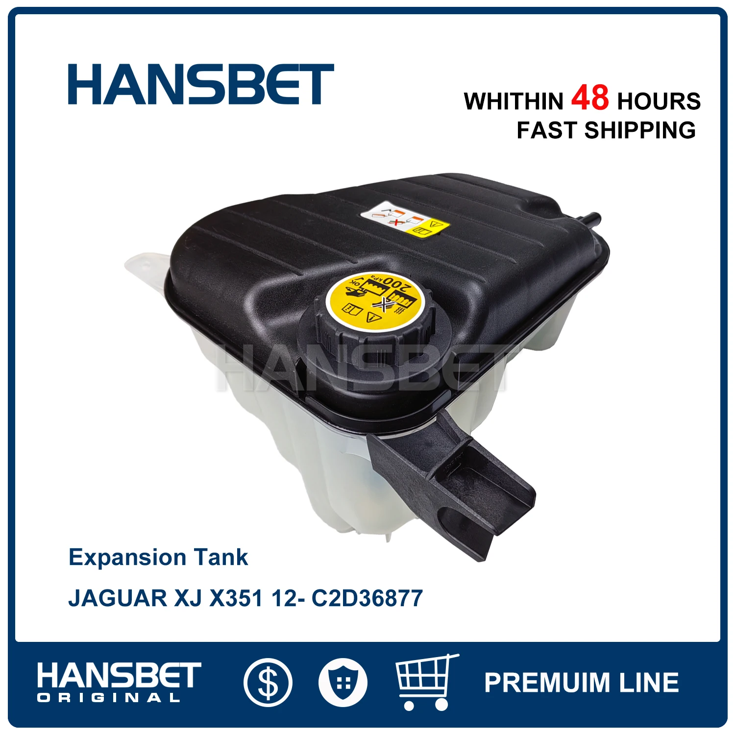 Radiator Coolant Expansion Tank W/ Cap and sensor For Fits JAGUAR XJ X351 12- C2D36877 HANSBET