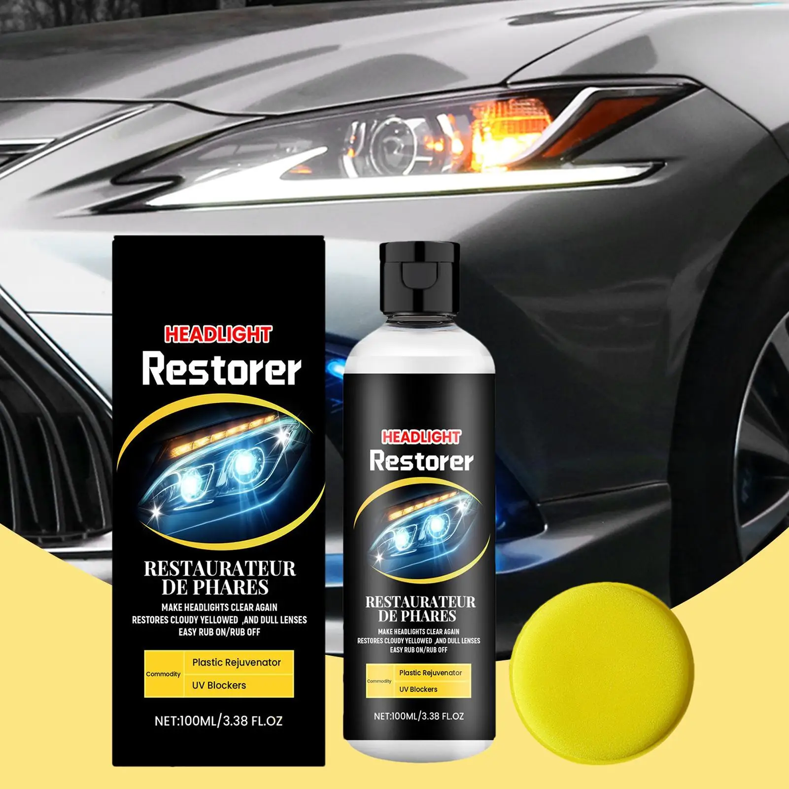 100ml Headlight Renewal Polish Maintenance Liquid Kit with Sponge & Cloth Restorative Liquid Headlight Polisher Auto Accessories
