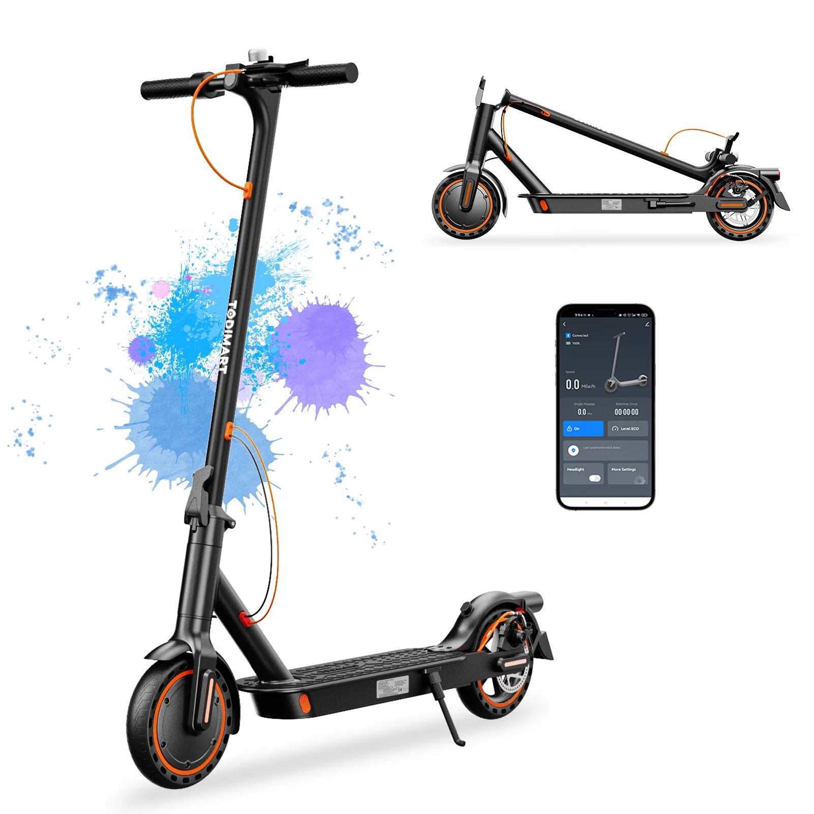 TODIMART T3 Foldable and Portable Electric Scooter with APP Control, 350W 36V 10.4Ah Motor, 25km/h Speed, 8.5" Tires