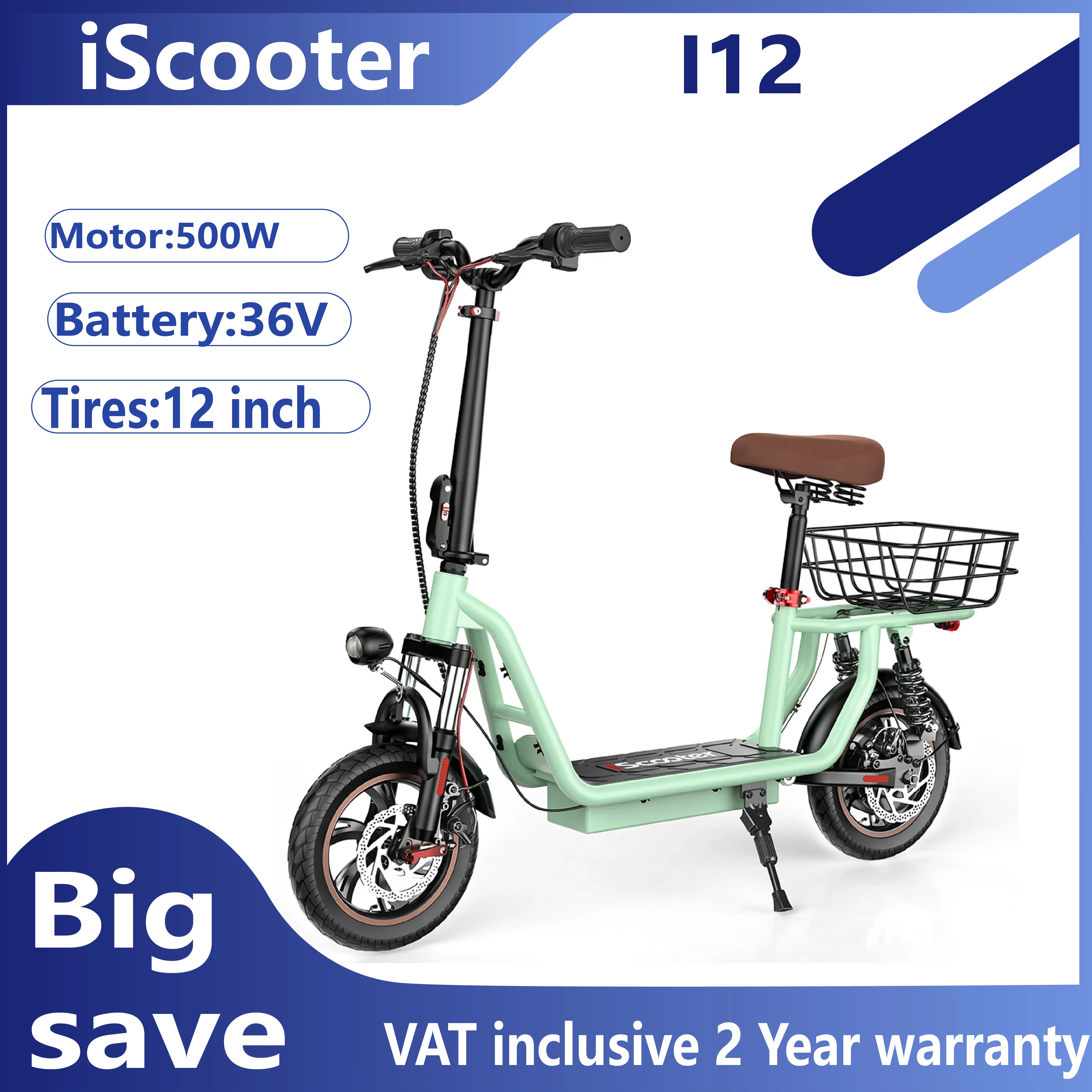iScooter i12 Electric Scooter 500W Motor 36V7.8AH With Seat With Basket E-Scooter Commuter Travel Fold Scooter 1-Year Warranty