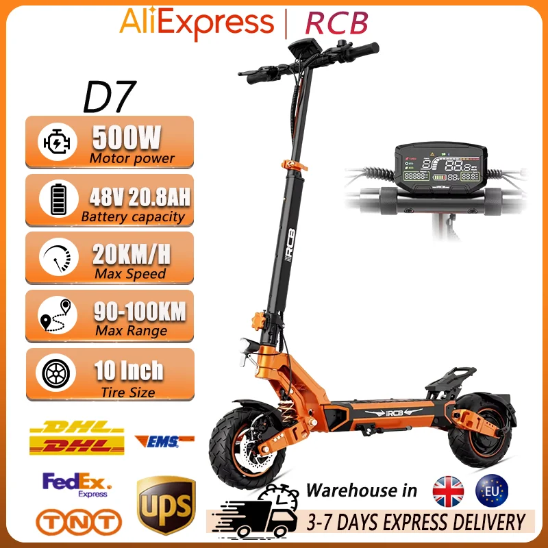 RCB D7 Foldable Electric Scooter 500W Motor 48V20.8AH Battery Adult Scooter 10 In Tire Doppelte Bremse E-scooter With Bluetooth
