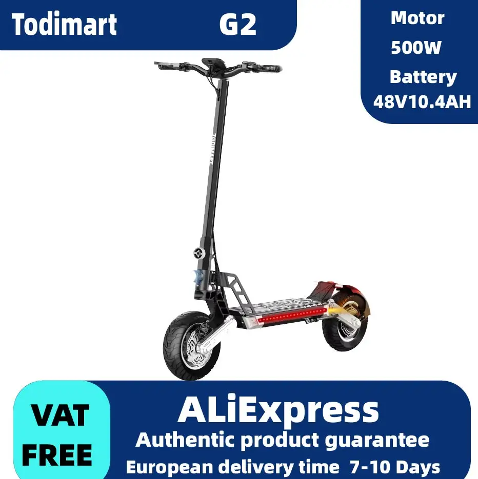 Todimart G2 Adult Foldable Escooter 48V10.4AH Battery Electric Skateboard 500W Electric Scooter 10 Inch Tire E-Scooter
