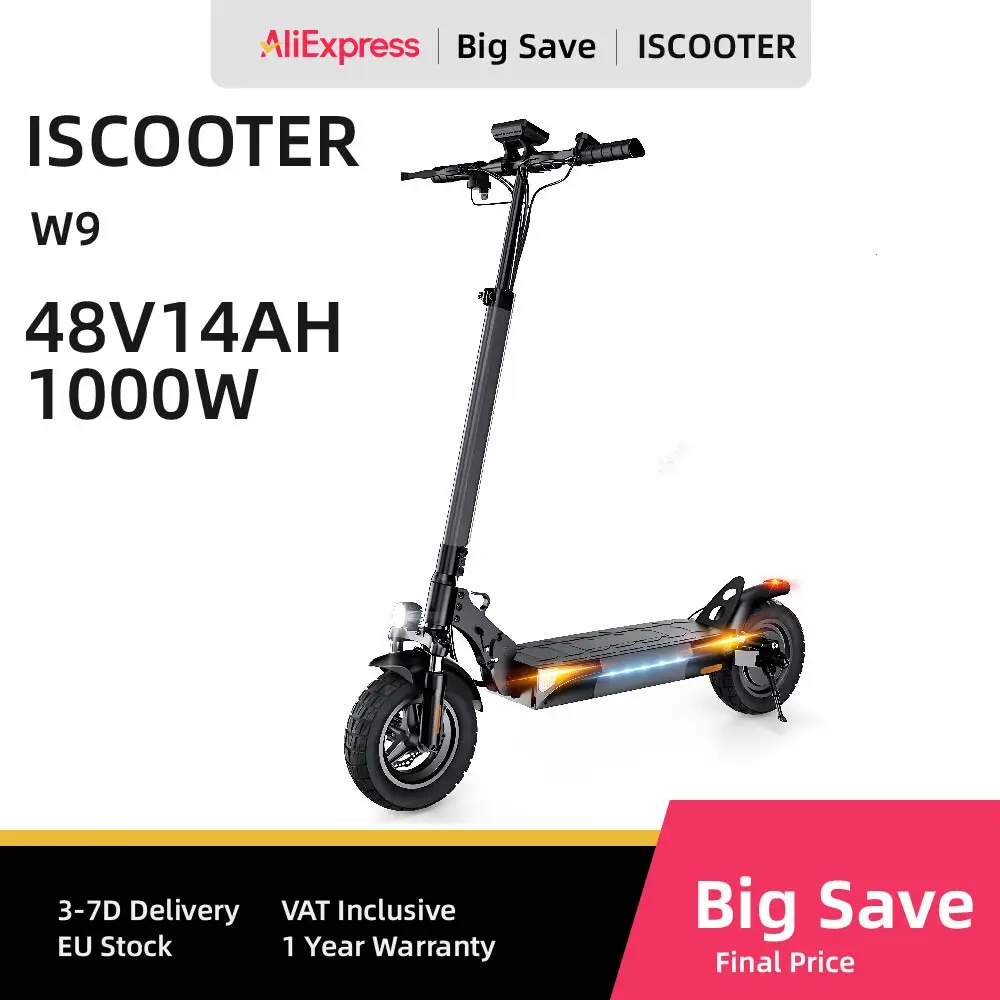 ISCOOTER W9 Adult Electric Scooter 1000W motor E-Scooter 48V14AH 10" Inflatable off-road Tires Foldable EScooter