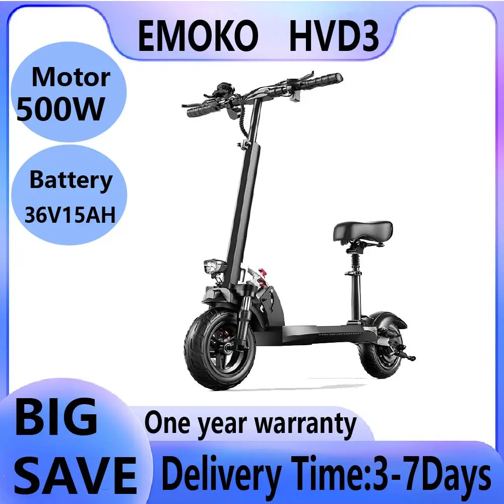 EMOKO HVD3 City Electric Scooter 800W 48V15AH Battery 10 Inch Tires EScooter Adult City Commuter E-Scooter