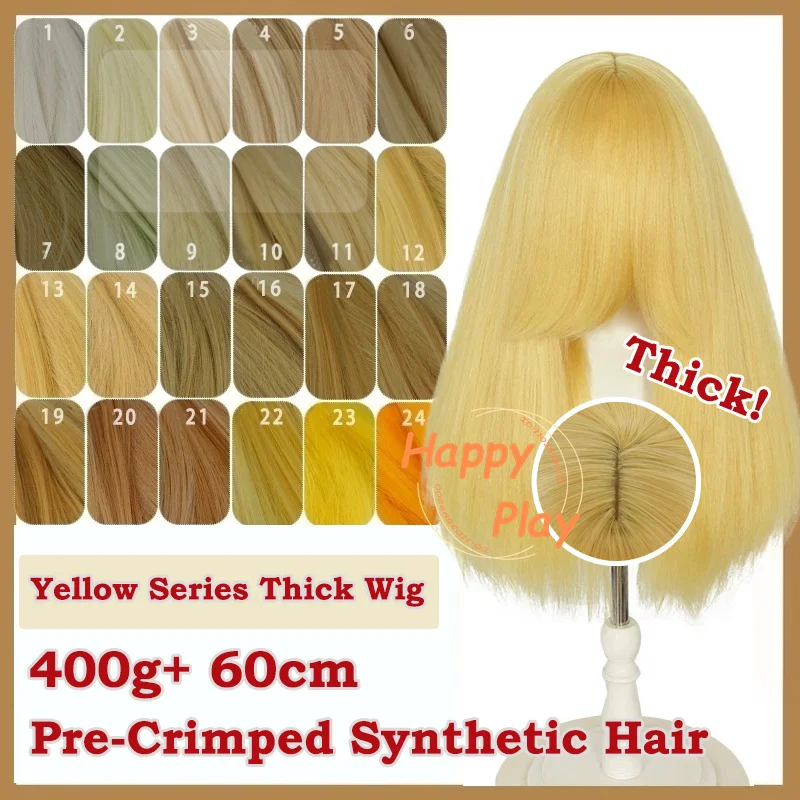 Pre-Crimped Synthetic 400g+ 60cm Cosplay Wig With 30CM Bangs Yellow Series Volume Universal Wig Heat Resistant Hair For Women