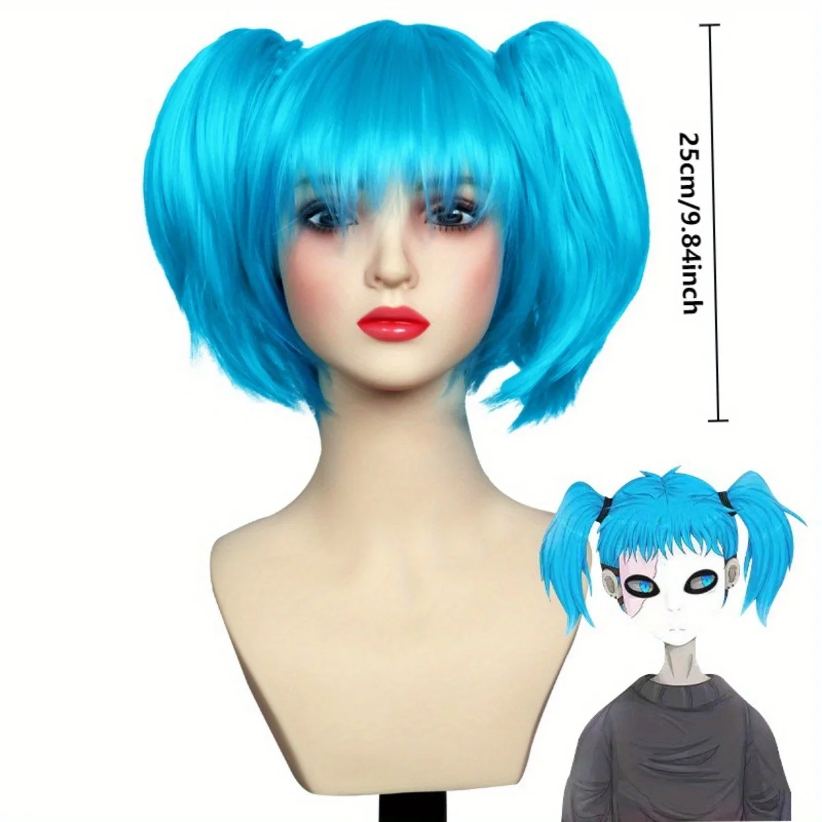 Medium Size, Basic Style, Animated Character Cosplay Wig, Blue, Heat-Resistant Synthetic Wig