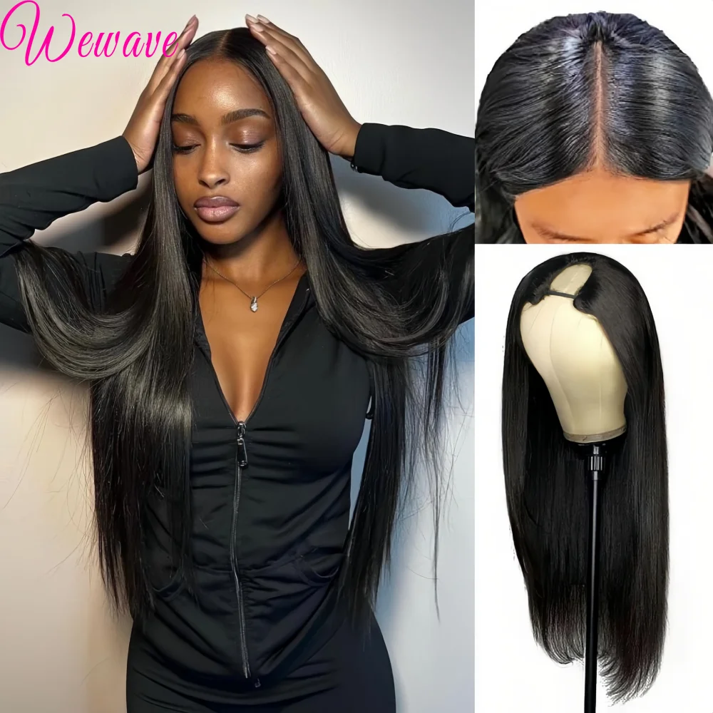V part Wig Straight Hair Upgrade 100% Brazilian Glueless Wigs Human Hair Head Clip In Half Wig 220 Density 30 40 Inch For Women