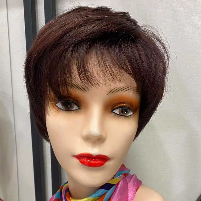 Short Pixie Wigs for Black Women Pixie Wig Human HairNatural Straight Full Machine Made Wig 1b/Red Daily Use Color Short Layered