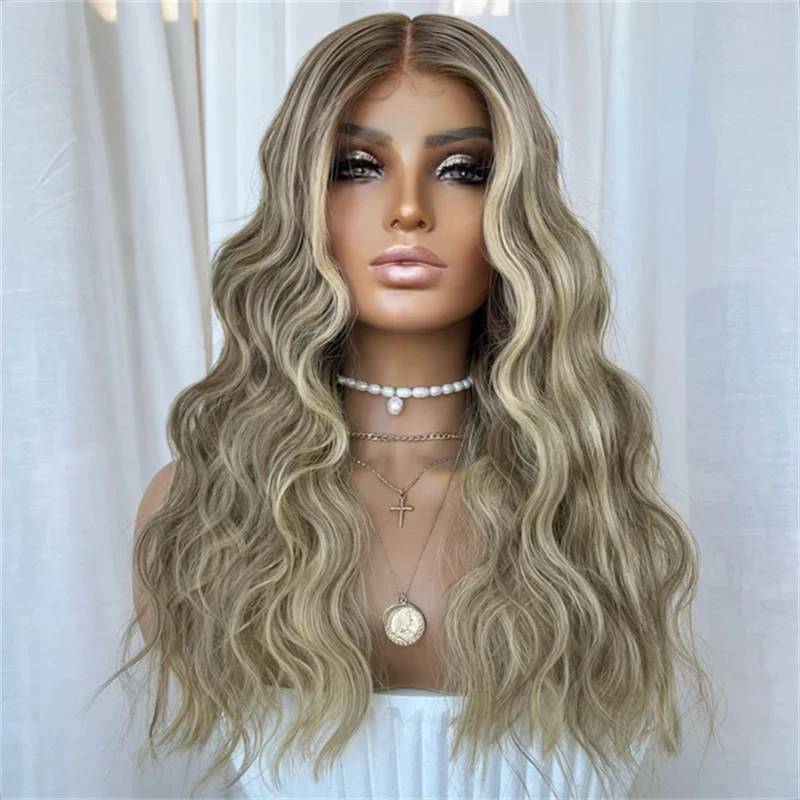 Highlight Honey Blonde Colored Smooth Water Wave Lace Front Wigs Long Synthetic Baby Hair Wig 13X4 Frontal Lace Wigs For Women