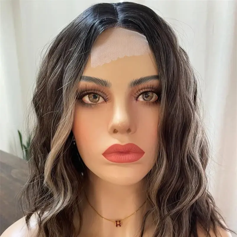 Ombre Brown Blonde Balayage Lace Front Wig Wave Bob Pre Plucked Hairline Heat Resistant Natural Preplucked Hairline For Women