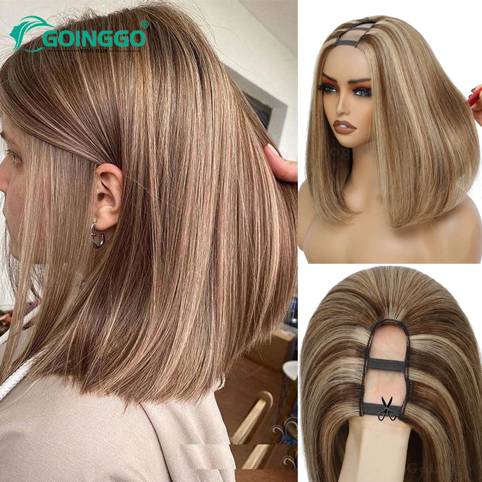 U Part Bob Wig Highlight Color Straight Short Bob Human Hair Wigs For Women No Glue U Shape Wig Short Bob Wigs Full Density End