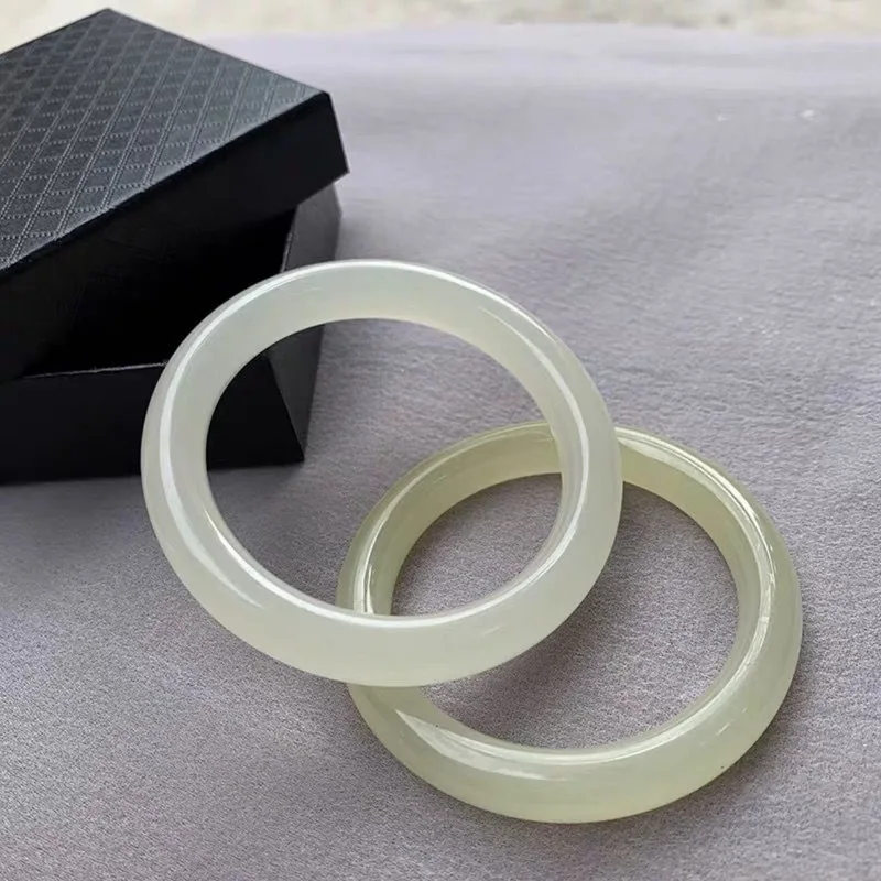 Genuine Natural White Jade Bangle Bracelet Charm Jewellery Fashion Accessories Hand-Carved Lucky Amulet Gifts for Women Her Men