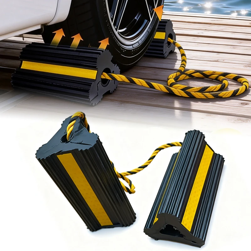 Rubber Tires Chocks Block Stopper 1/2 Pair with Nylon Rope Sturdy Temporary Parking for Travel Trailers RV Aircraft Truck Camper