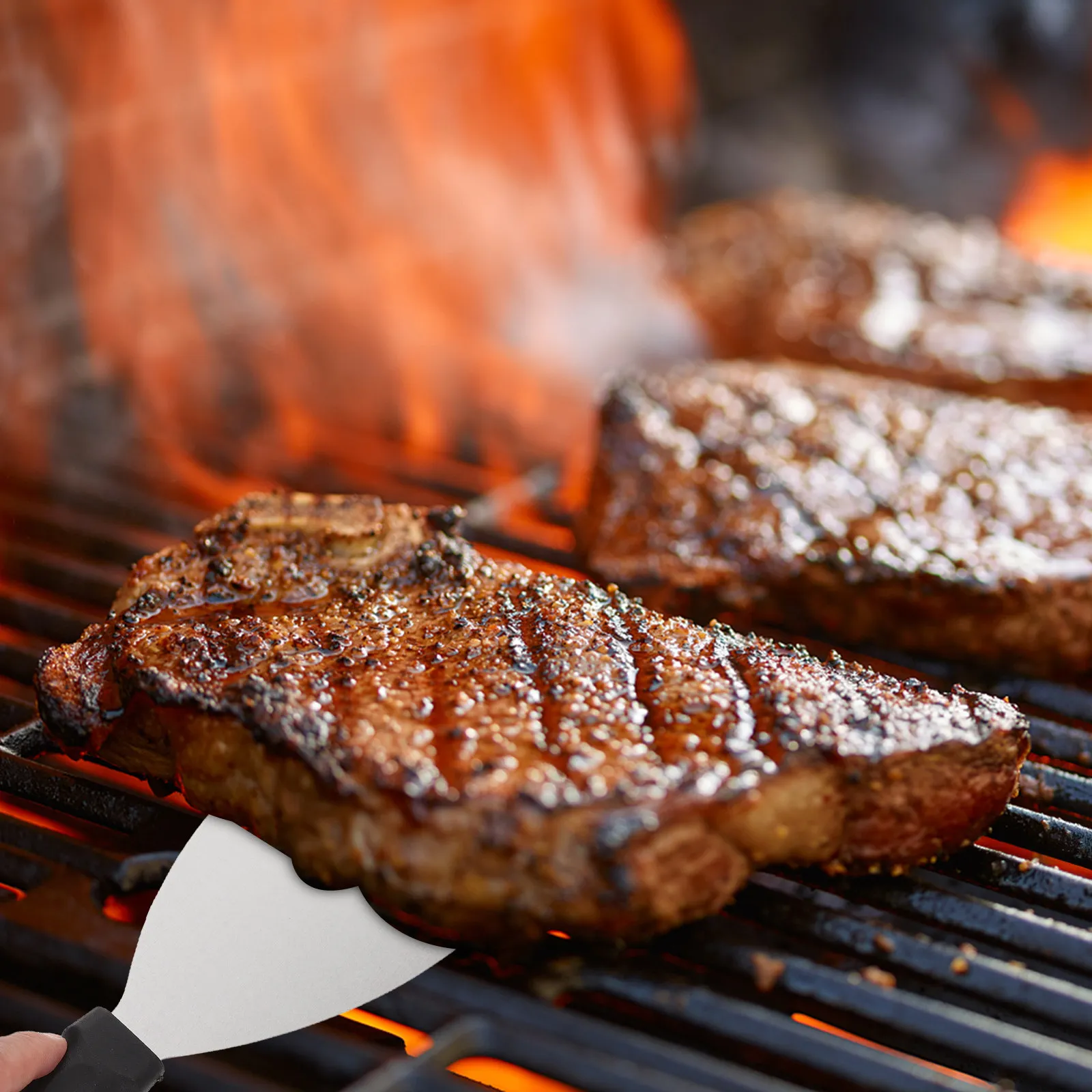 2Pcs Steak Spatulas Stainless Steel Plastic Handles Multi-Function Teppanyaki Bbq Pizza Pancake Cooking Tools Non Slip Ergonomic