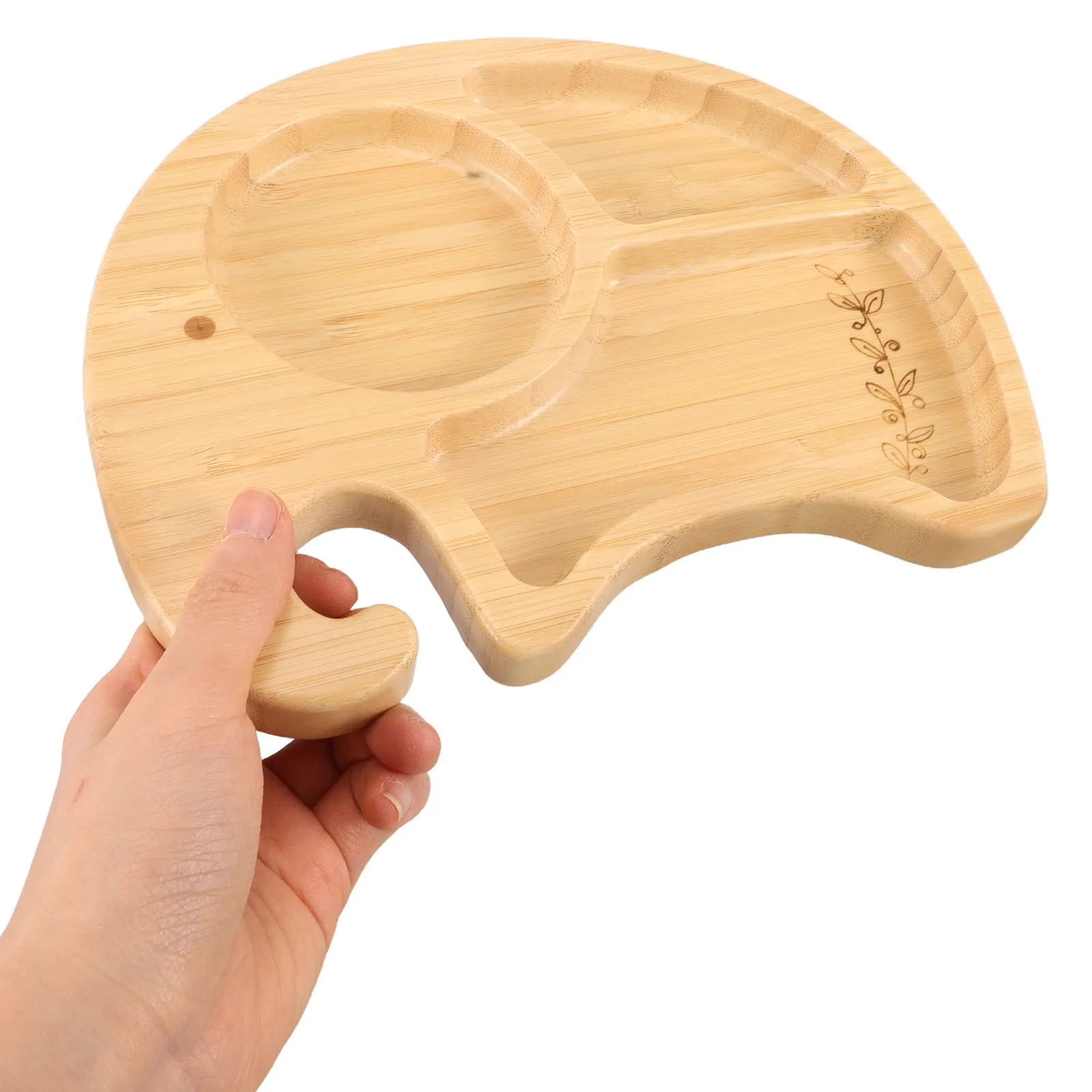 'S Divided Wooden Plate Cute Cartoon Animal Suction Base Anti-Fall Feeding Bowl For Food Tray