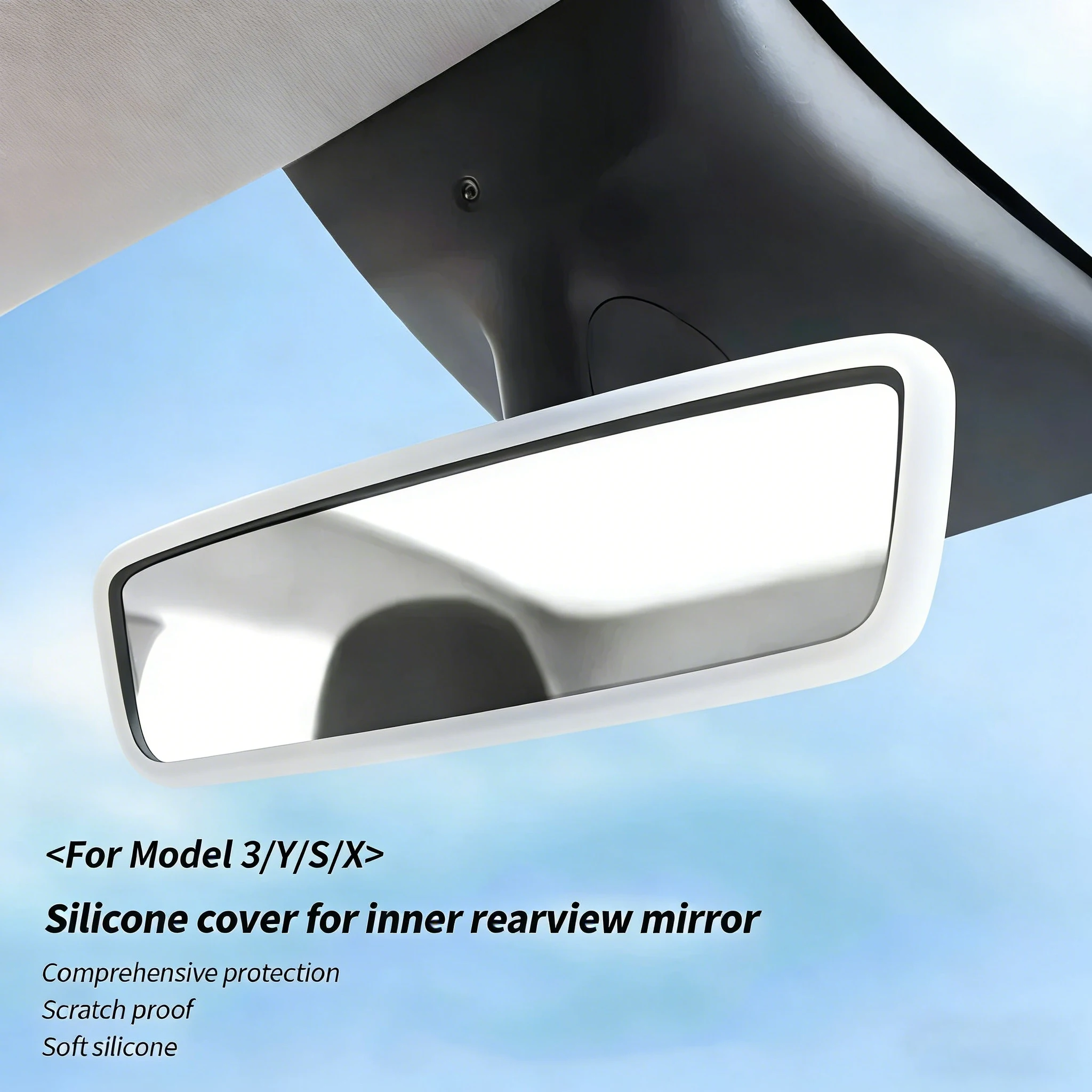 Rear View Mirror Cover For Tesla Model 3/Y/S/X, Silicon Protector Frame Interior Rearview Mirror Cover Decorate Accessories