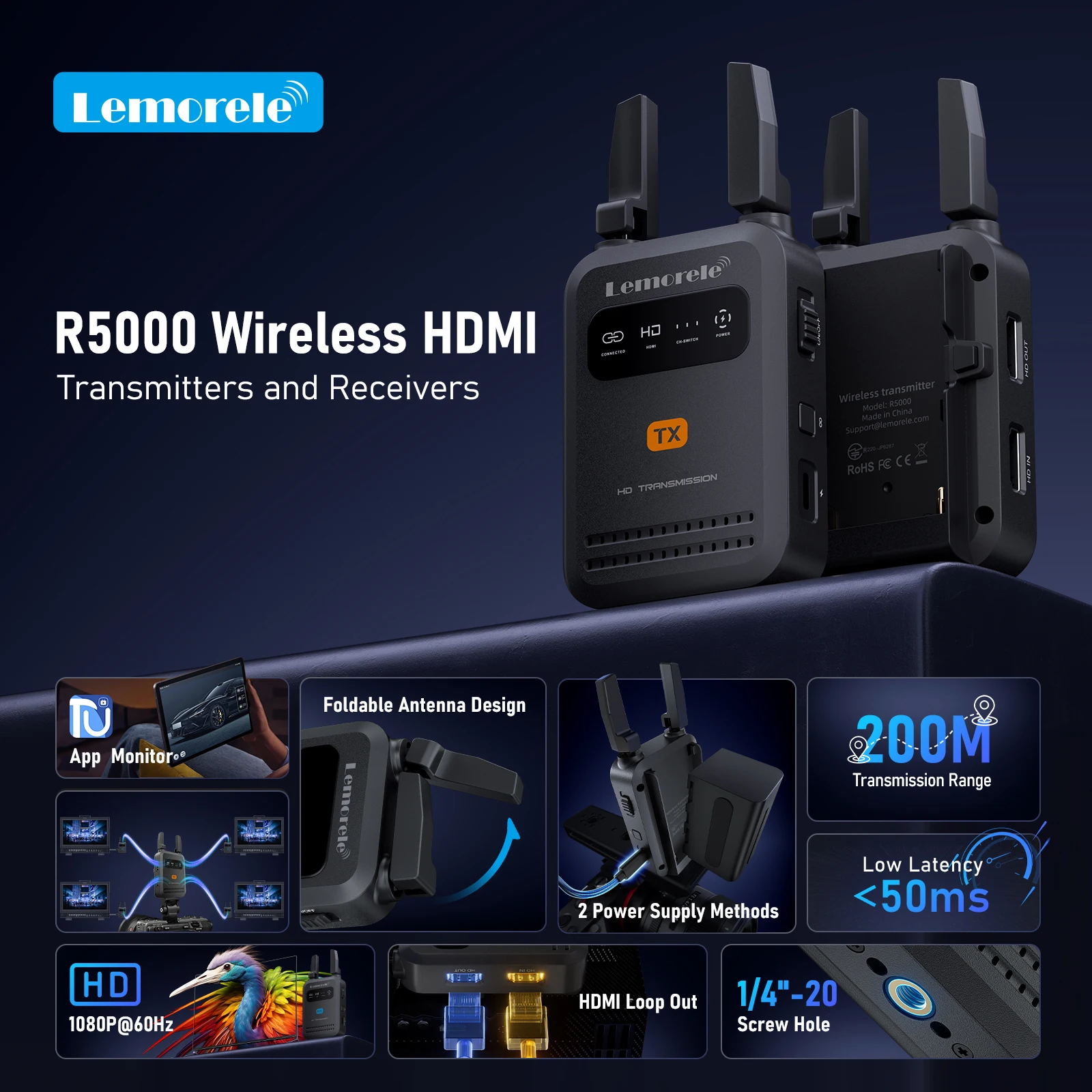 JM300 Pro 4K 200m Wireless HDMI Extender Dual HDMI Video Transmitter and Receiver for PC Camera Live Streaming Support Battery