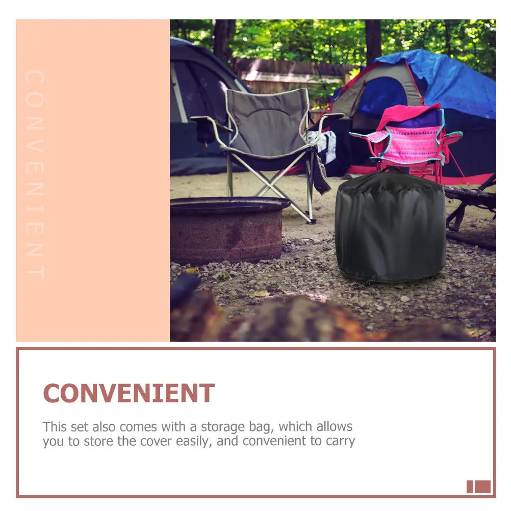 1Set Fire Pit Cover Round Weather-Resistant Tear-Proof Outdoor Fireplace Cover for Patio Camping Garden Use with Storage Bag